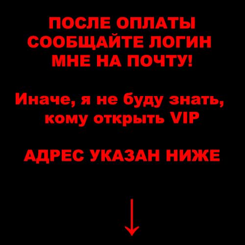Пожалуйста, не забывайте сообщать нам на емейл ваш ник (логин) на сайте и на каком сайте хотите получить VIP-доступ. И желательно сразу скрин оплаты скинуть!!!